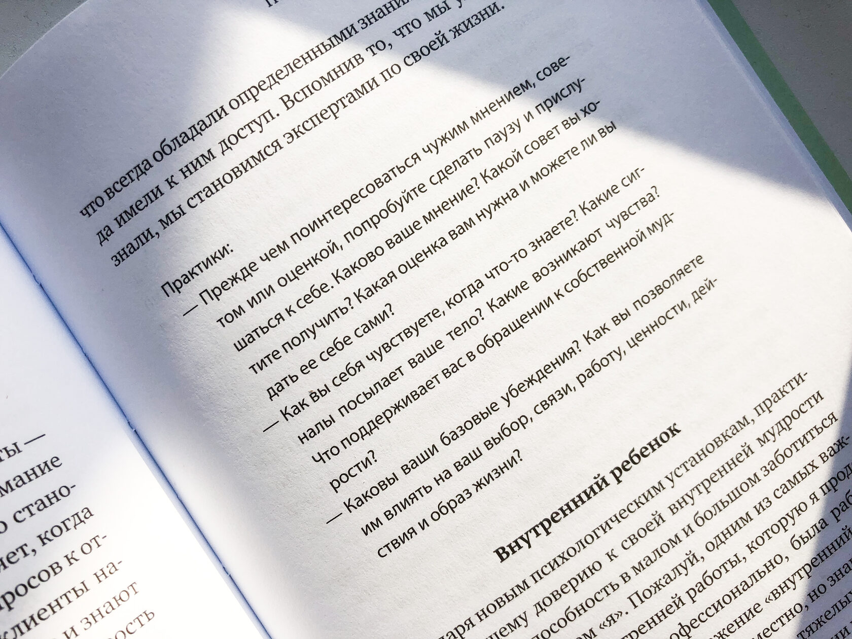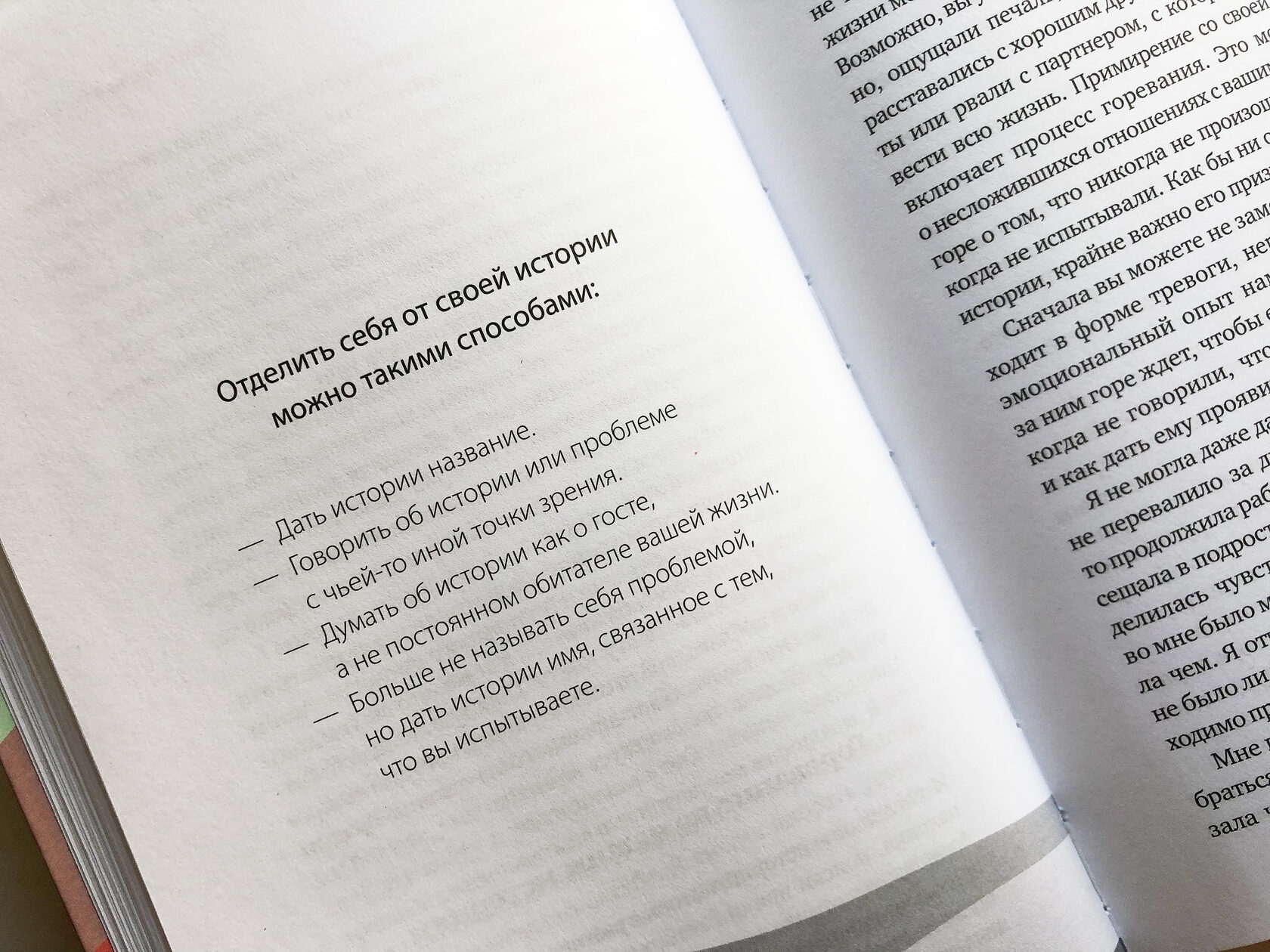 Также автор открыто признает - это так ценно! - что она не прошла свой путь исцеления до конца. Она все еще в процессе, даже когда пишет эту книгу. И пробует создать для себя другие истории вместе с читательницами. Это ок, говорит она, что не получается сразу, что бывают откаты, что иногда есть чувство потерянности, тоски, депрессии. Это все сложно.